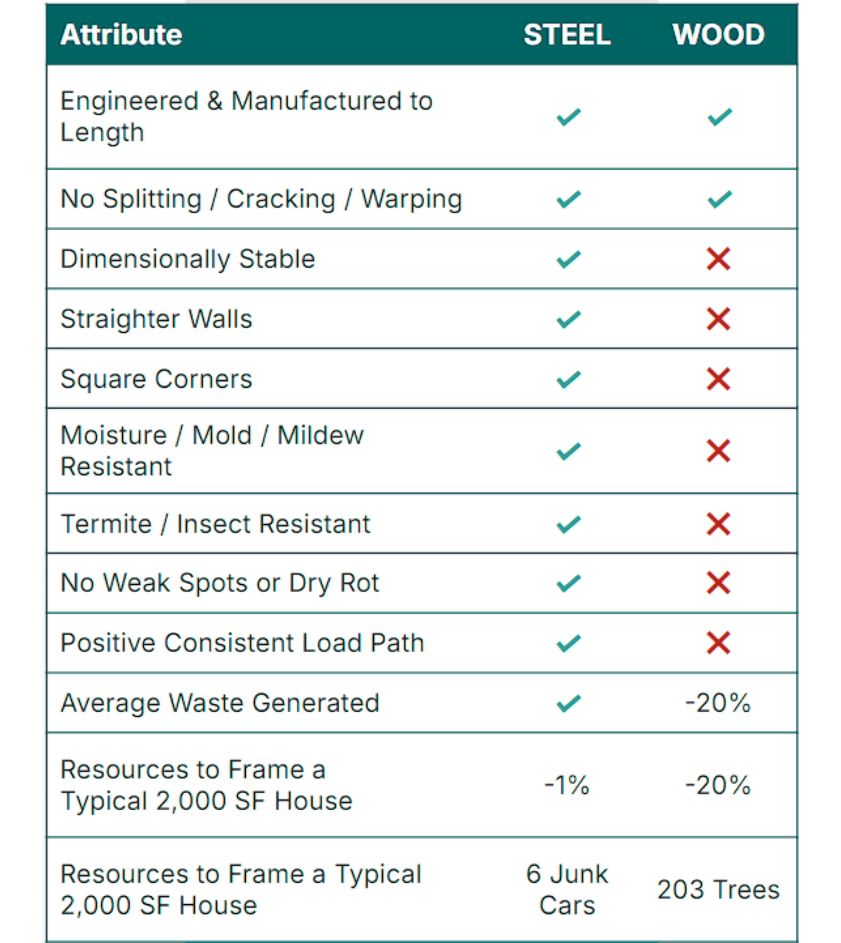 Steel framing ensures there is no risk of dry rot, termite infestation, or material warping, providing long-term structural integrity and lower maintenance over the building's life cycle.